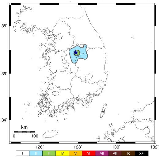 ÃæºÏ ±«»ê±º ºÏµ¿ÂÊ 11km Áö¿ª 36.88¢ªN,127.88¢ªE (¡¾ 0.8 km) |
