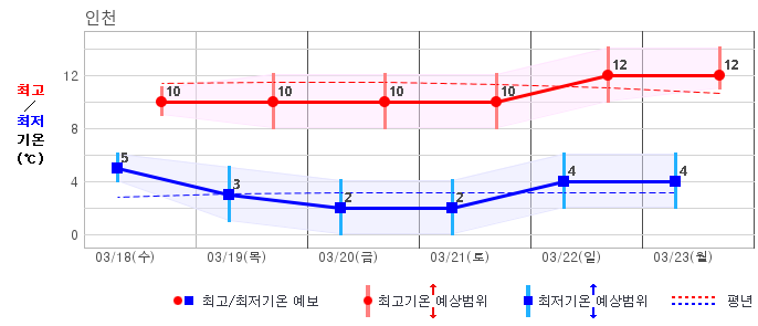 | 인천 | -3 / 5 | 0 / 5 | -1 / 7 | 2 / 8 | 3 / 9 | 2 / 8 | 2 / 7 | 그래프 | |