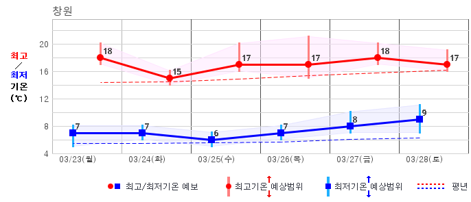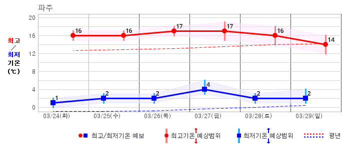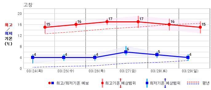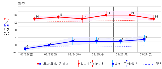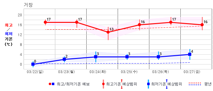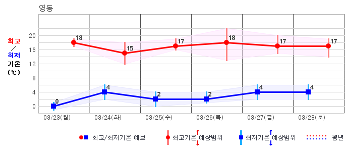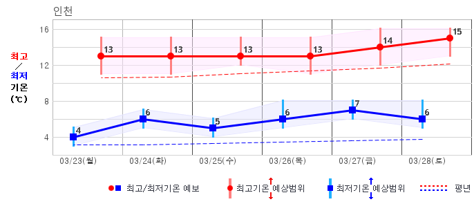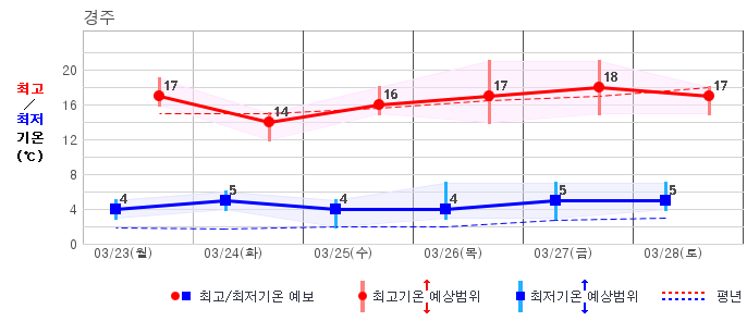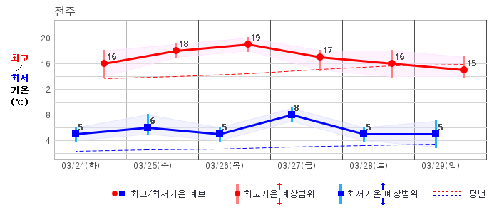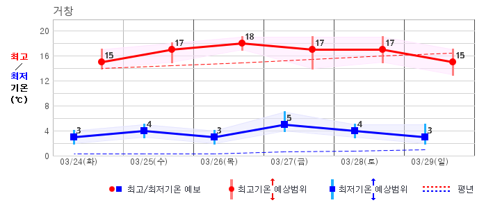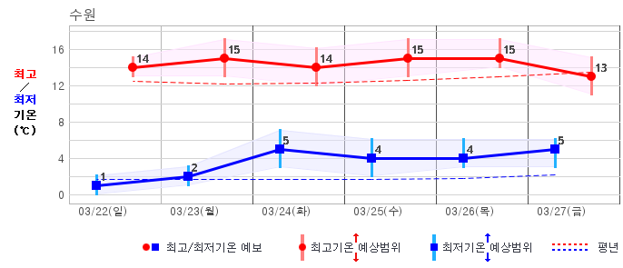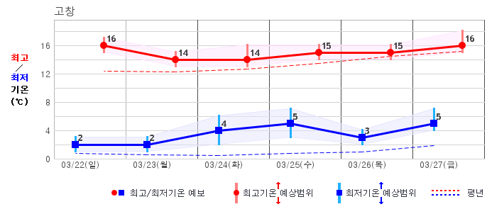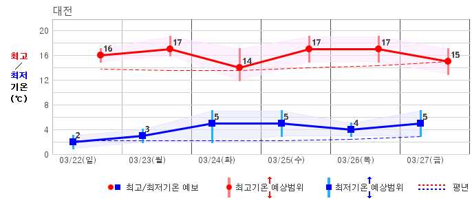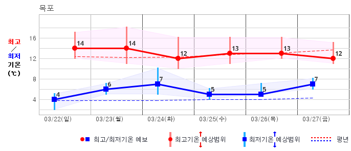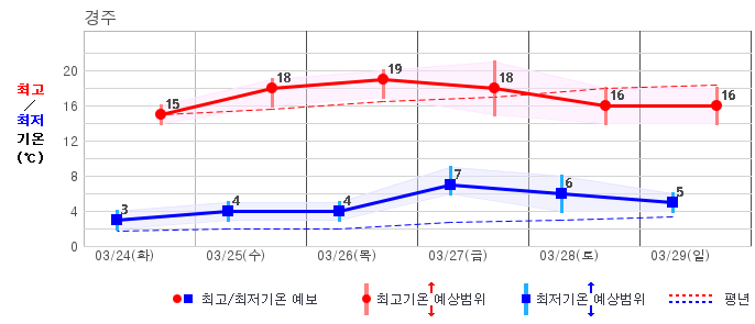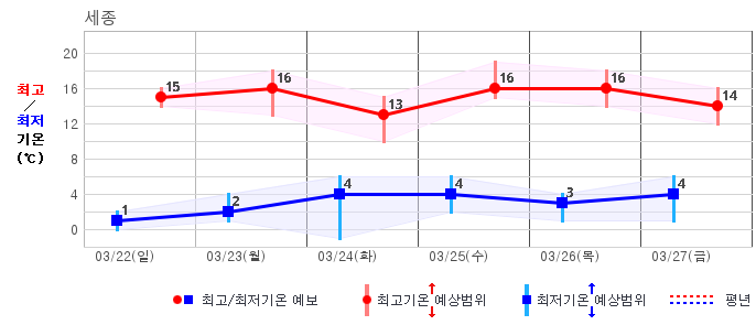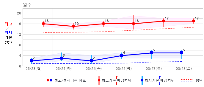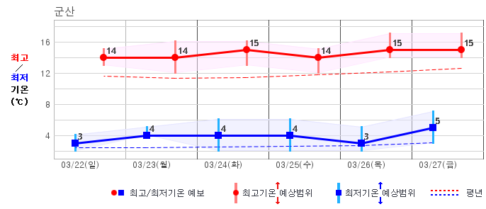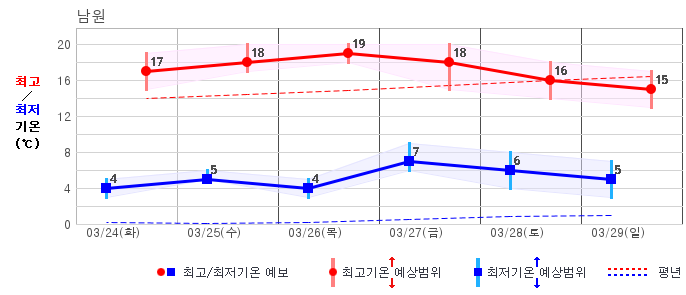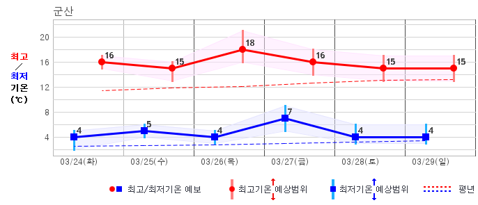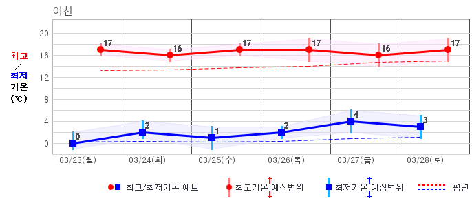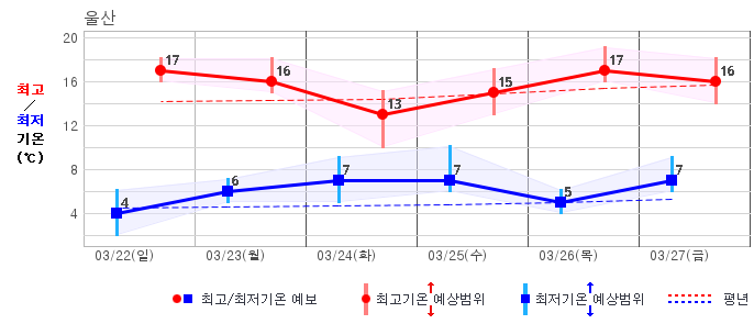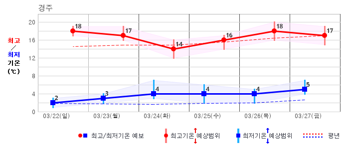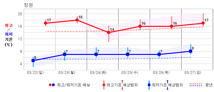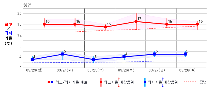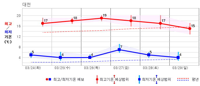 춘천 | -2 / 14 | 3 / 10 | -5 / 5 | -4 / 5 | -5 / 5 | -8 / 4 | -9 / 4 | 그래프 |