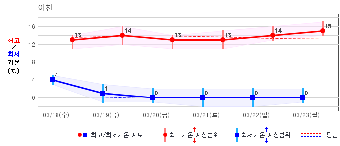 | 이천 | -5 / 8 | -2 / 7 | 0 / 9 | -1 / 11 | 0 / 12 | 1 / 11 | 1 / 10 | 그래프 | |