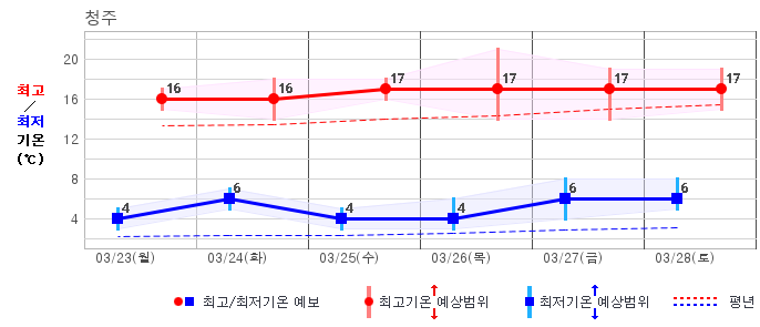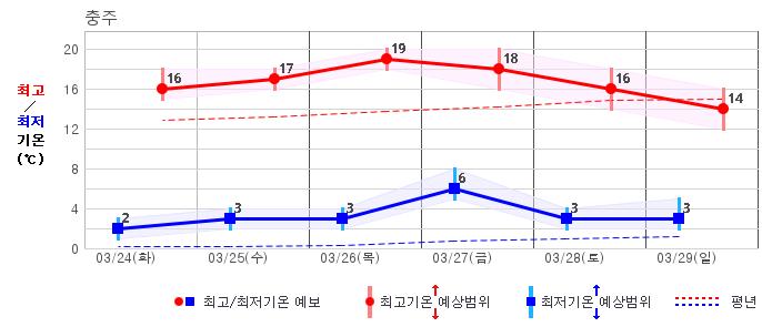| 충청북도 | 청주 | 3 / 18 | 7 / 13 | -3 / 6 | -2 / 6 | -2 / 5 | -4 / 6 | -4 / 6 | 그래프 |