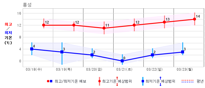 | 홍성 | -4 / 8 | 0 / 5 | -2 / 8 | 1 / 10 | 3 / 13 | 4 / 11 | 3 / 10 | 그래프 | |
