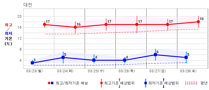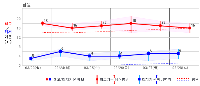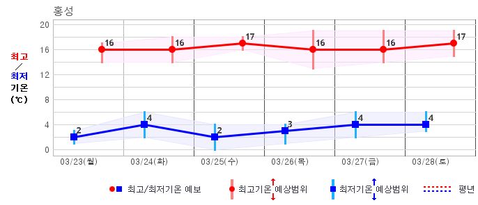 | 홍성 | 3 / 17 | 6 / 12 | -3 / 6 | -3 / 4 | -4 / 3 | -4 / 6 | -5 / 4 | 그래프 | |