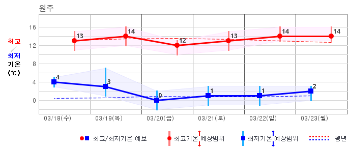 - 그래프를 클릭하면 최저/최고기온과 변동성 정보를 확인하실 수 있습니다.