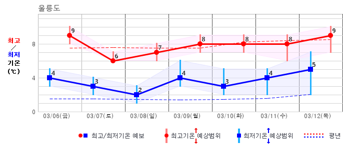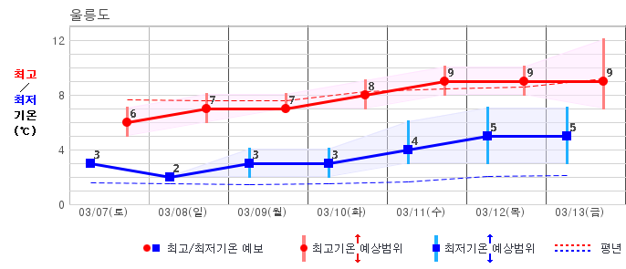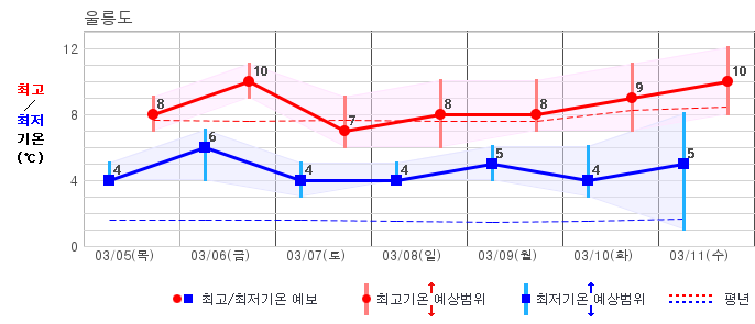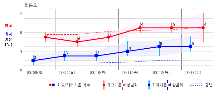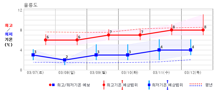 | 울릉도 | 5 / 6 | 3 / 7 | 4 / 8 | 5 / 8 | 5 / 8 | 5 / 9 | 6 / 10 | 그래프 | |