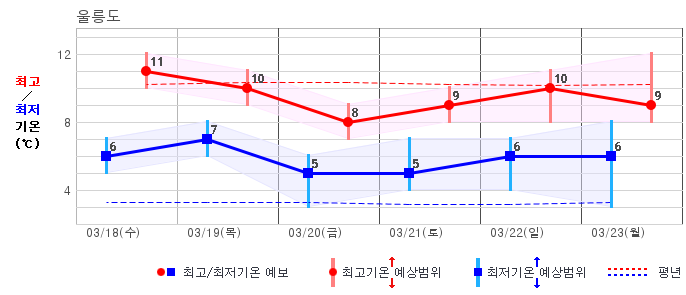 | 울릉도 | 2 / 9 | 6 / 9 | 4 / 8 | 4 / 8 | 3 / 7 | 4 / 8 | 5 / 7 | 그래프 | |