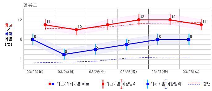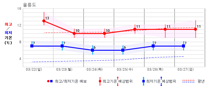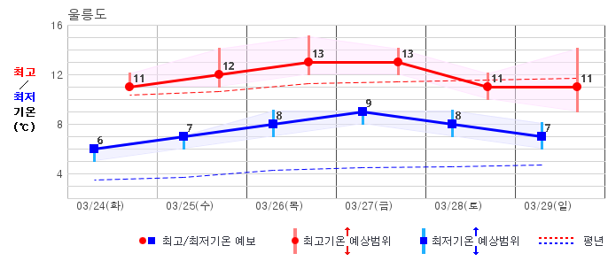 | 울릉도 | 7 / 13 | 9 / 10 | 2 / 8 | 4 / 6 | 1 / 5 | 0 / 3 | 0 / 4 | 그래프 | |