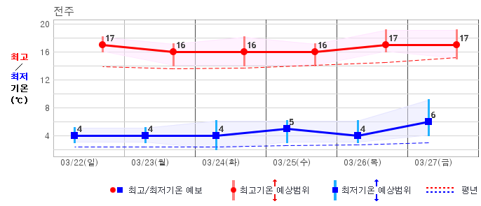 | 전북자치도 | 맑음10% | 맑음10% | 흐림30% | 흐림20% | 구름많음20% | 구름많음30% | 흐림40% | 흐림40% | 구름많음30% | 맑음20% | 맑음10% |