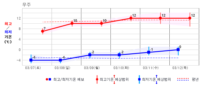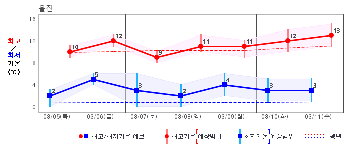 강릉 | 2 / 7 | -1 / 8 | 2 / 10 | 4 / 9 | 2 / 9 | 2 / 9 | 2 / 10 | 그래프 |