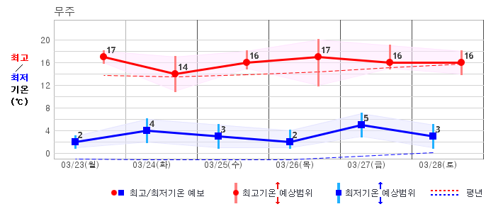| 무주 | 3 / 17 | 7 / 13 | -4 / 6 | -4 / 4 | -5 / 3 | -6 / 5 | -7 / 4 | 그래프 | |