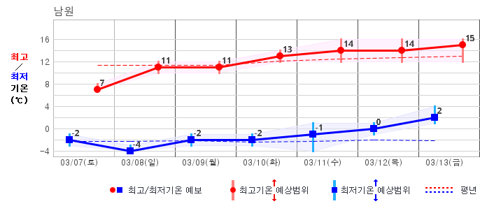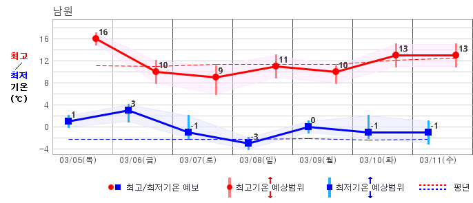 | 남원 | 0 / 5 | -2 / 7 | -2 / 9 | 0 / 9 | -1 / 9 | 0 / 8 | -1 / 10 | 그래프 | |