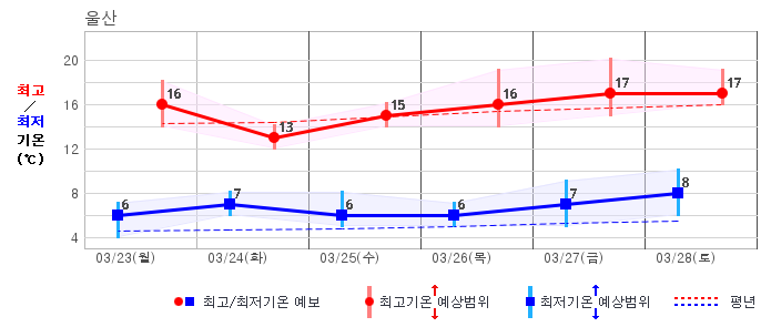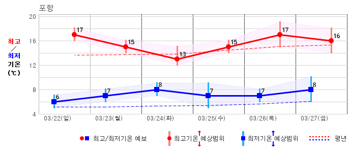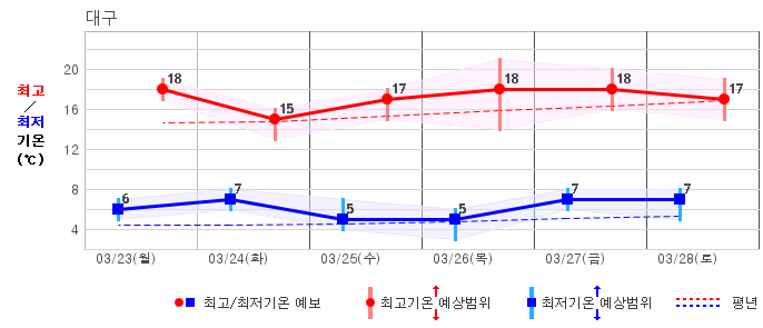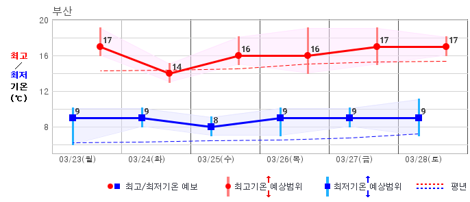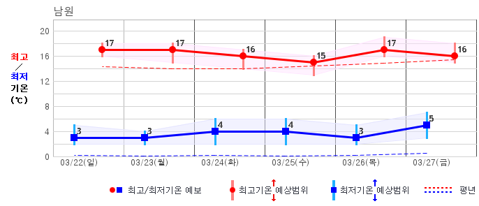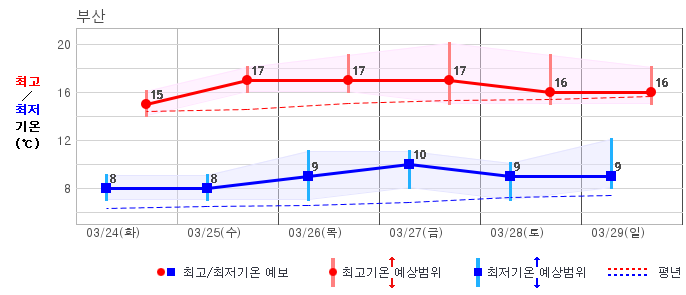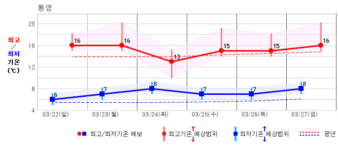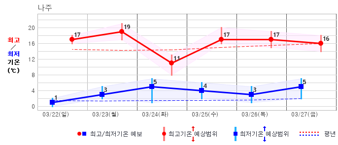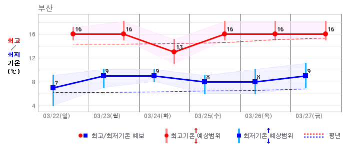 | 지역 | 21일(토) | 22일(일) | 23일(월) | 24일(화) | 25일(수) | 26일(목) | 27일(금) | ||||