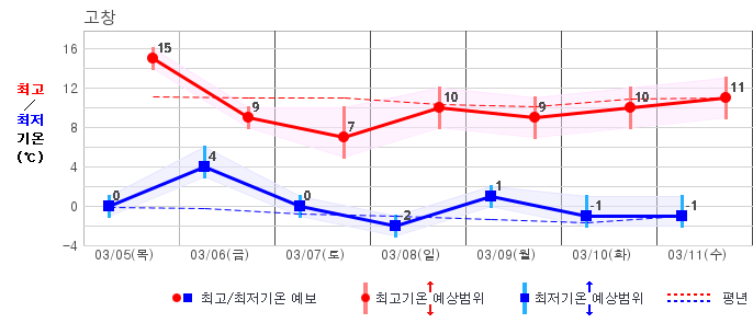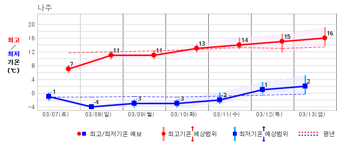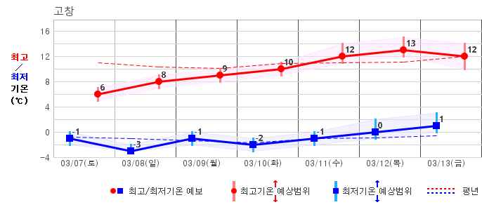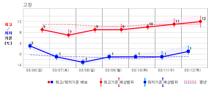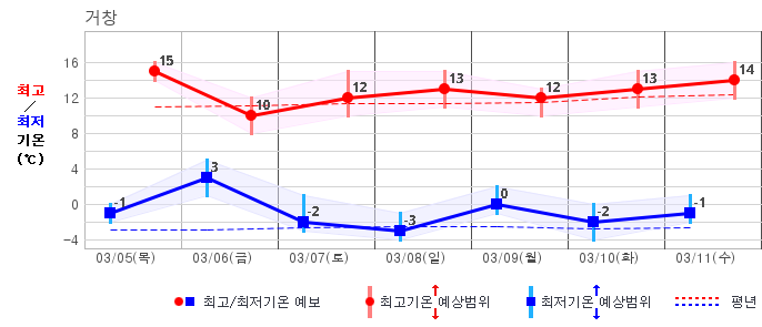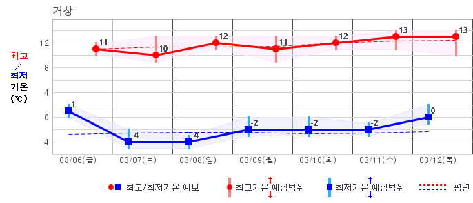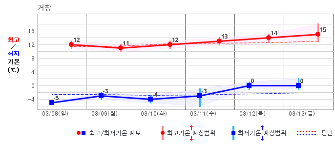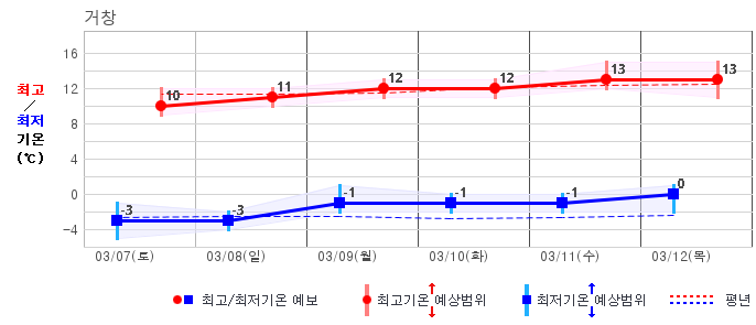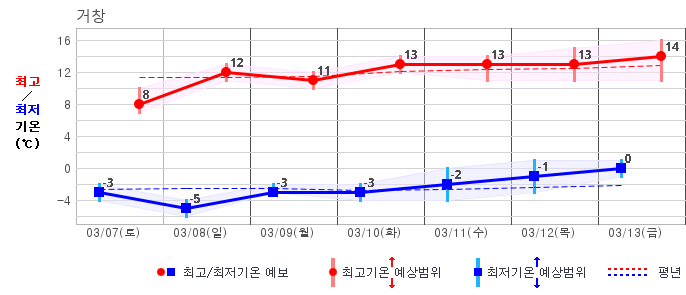 | 거창 | -2 / 7 | -5 / 8 | -6 / 9 | -3 / 10 | -3 / 9 | -3 / 10 | -2 / 10 | 그래프 | |