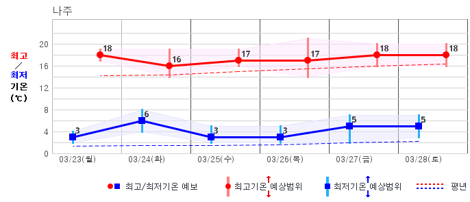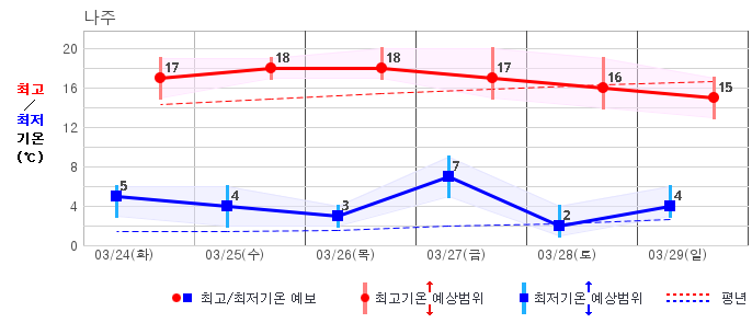 | 나주 | 4 / 18 | 8 / 15 | -1 / 9 | -2 / 7 | -3 / 3 | -3 / 7 | -4 / 7 | 그래프 | |