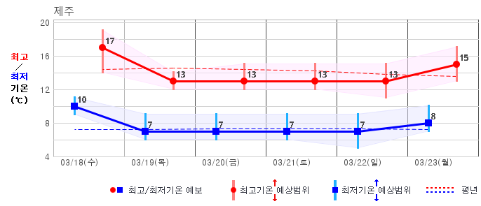 | 제주도 | 구름많음20% | 구름많음40% | 흐리고 비70% | 흐리고 비80% | 흐림40% | 흐림30% | 흐림40% | 흐림40% | 흐리고 비60% | 흐림40% | 흐림40% |